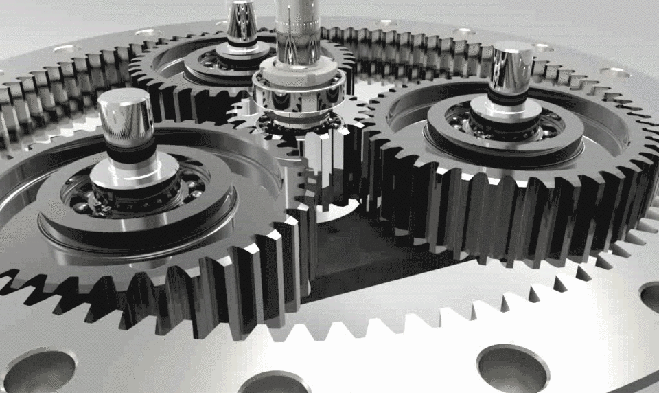 For example, a planetary set with a 12-tooth sun gear and 72-tooth ring gear has a gear ratio of 7:1 ([12 + 72]/12 = 7). Planetary gear sets can achieve ratios from about 3:1 to about 11:1. If more gear reduction is needed, additional planetary stages can be used.